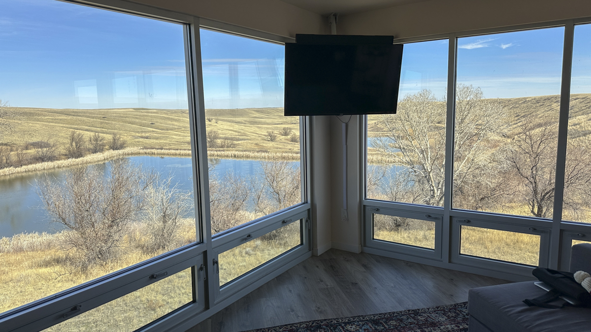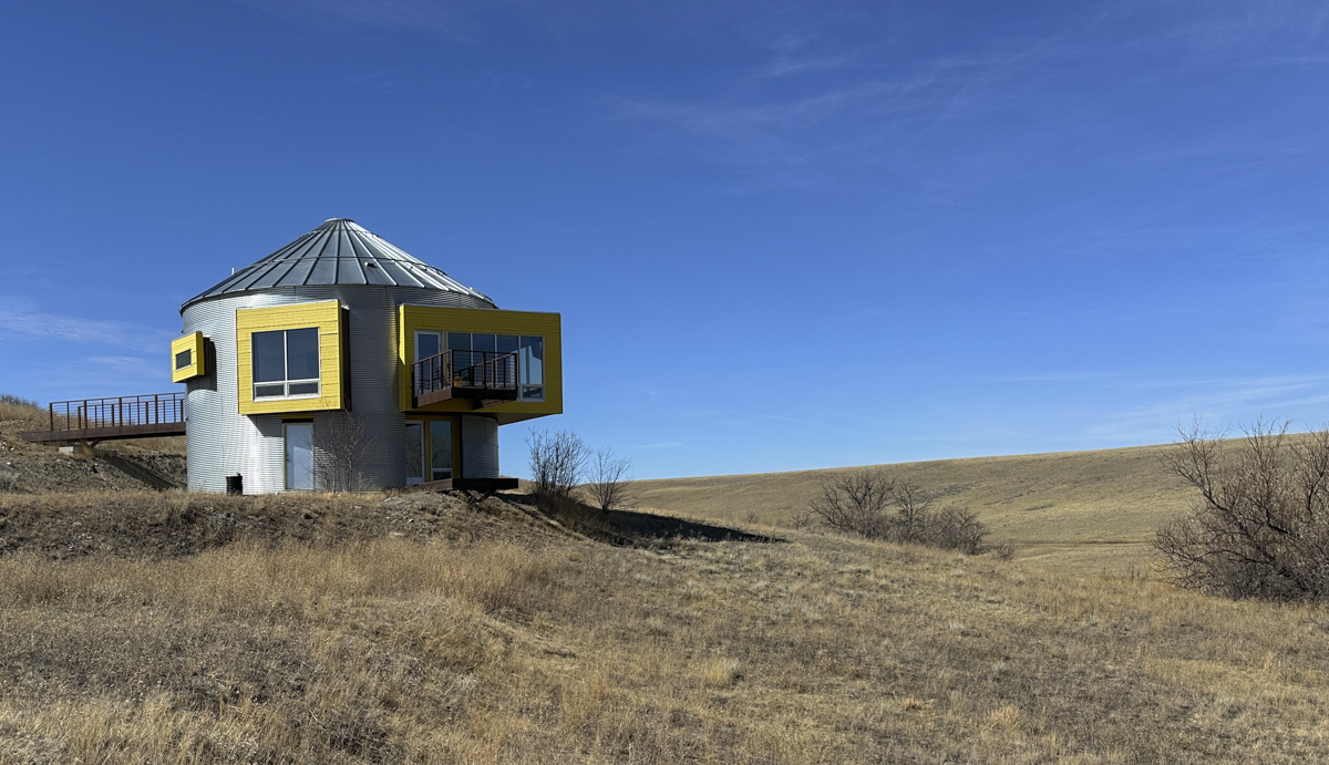 In her last post, Melissa eloquently described the first evening of our trip to Freezout Lake Wildlife Management Area to view migrating waterfowl. This post will give an overview of our 4-day trip to central Montana to hopefully satisfy our need to see migrating waterfowl, one of our favorite winter pastimes back in North Carolina. While we are lucky to live next to Yellowstone and have access to viewing amazing wildlife, we both miss the waterfowl spectacles we were able to experience every winter at places like Pocosin Lakes National Wildlife Refuge in eastern North Carolina. I had read that the snow geese migration at Freezout Lake can be a similar spectacle so we planned a trip. Before you send me a note about the misspelling of Freezout (I initially added that extra “e” as well), we learned that is an historical proper name derived from a nickname for a place called Freezout Flats in the late 1800’s instead of a direct description using the word freeze. Anyway, it is about a 4 1/2 hour drive from our home into the western edge of the Great Plains in Montana. For our stay, we rented a cool house that is a converted grain silo in a pastoral setting.