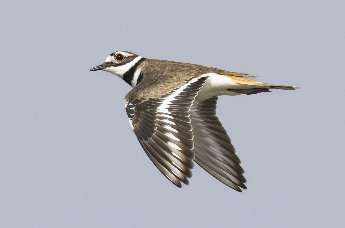 We sat for a long time in the car alongside the waterfowl, hoping they would come closer. Most did not, so these images were shot with my 200-800 zoom lens and are heavily cropped. One bird did fly nearby on several occasions but was tough to photograph as it blasted by each time – a killdeer. I finally managed several shots of it passing by calling and giving us the side eye.