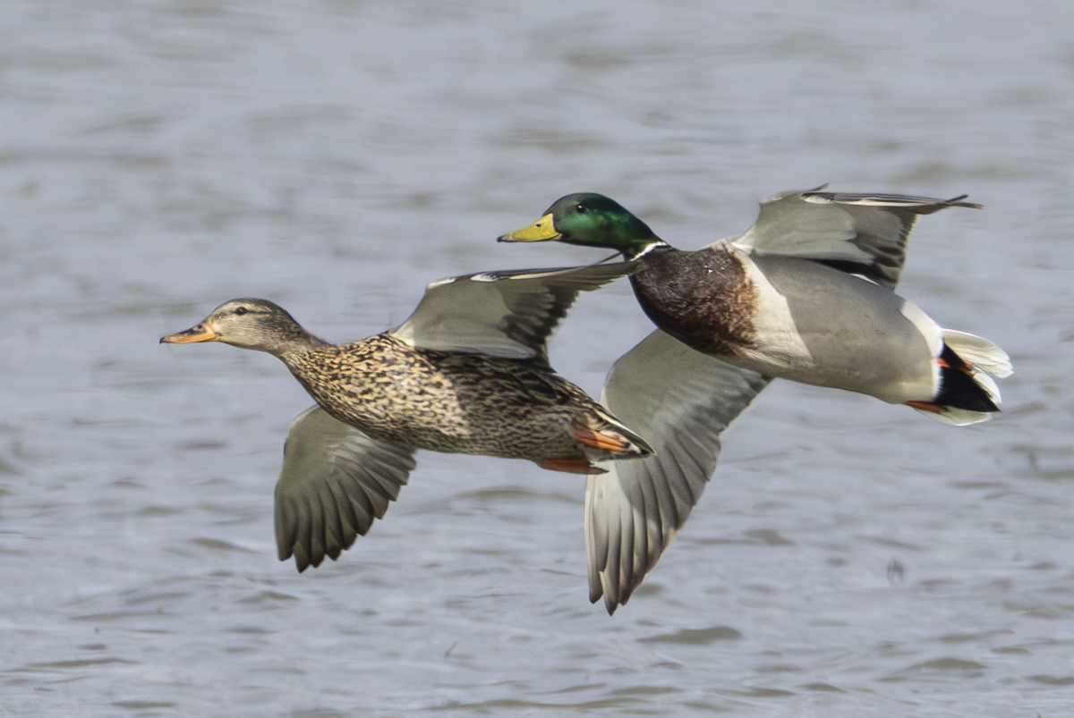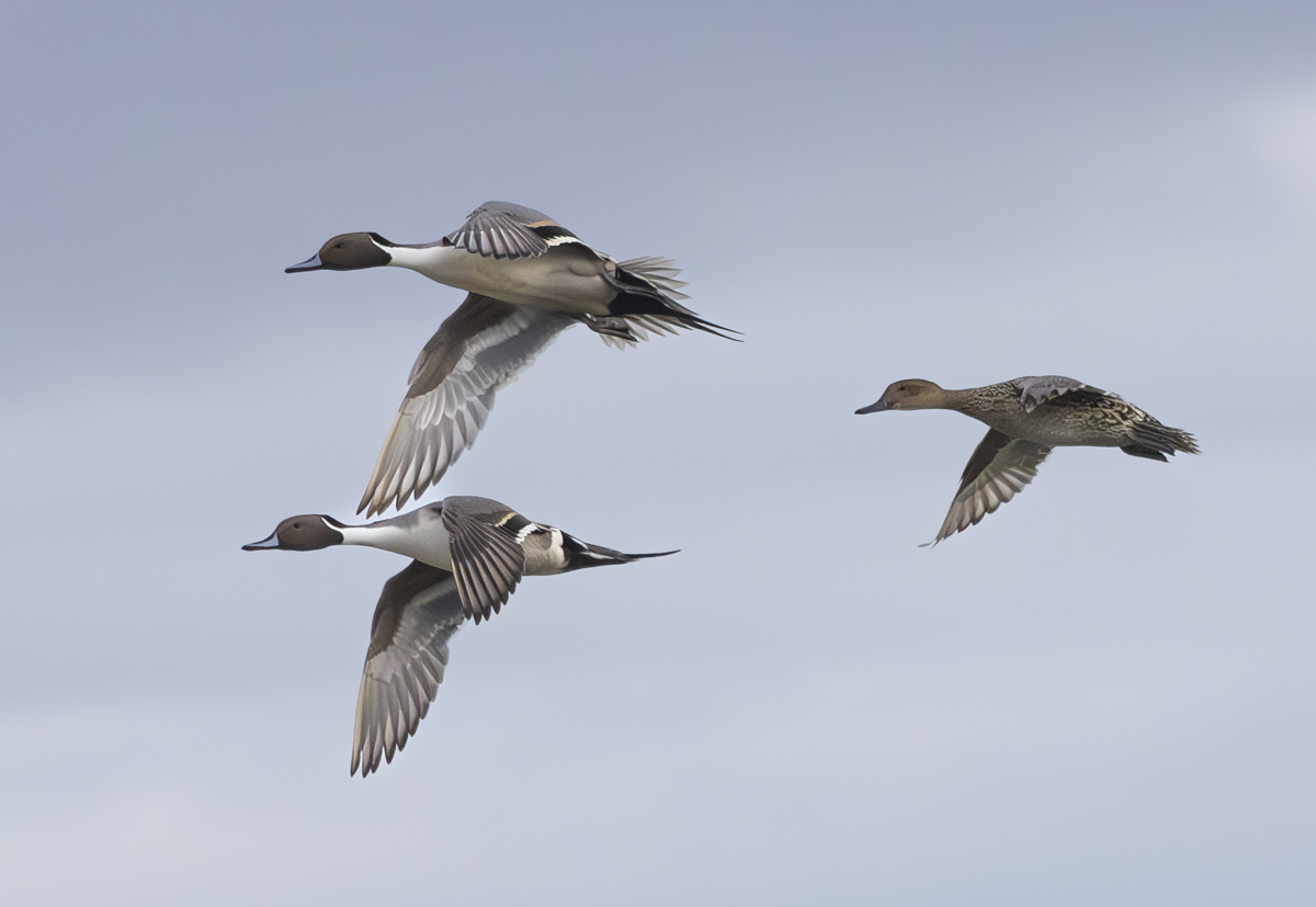 A couple of male American widgeon. The one on the right doesn’t seem too pleased with the other’s arrival.Redhead drakes are gorgeous ducks.A pair of mallards cruising into the pond.Another group of Northern pintails over the marsh