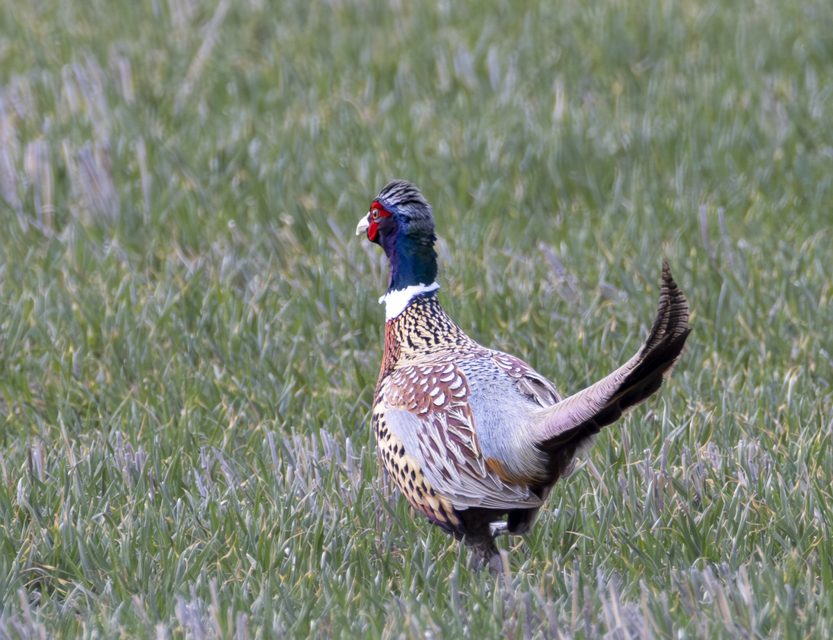 Driving the long, flat dirt roads (at 50 mph by the way) in central Montana also yielded some cool birds that have been introduced for hunting in this area. We saw several ring-necked pheasants (including this gorgeous male) and what we think were some chukar, a species of partridge.