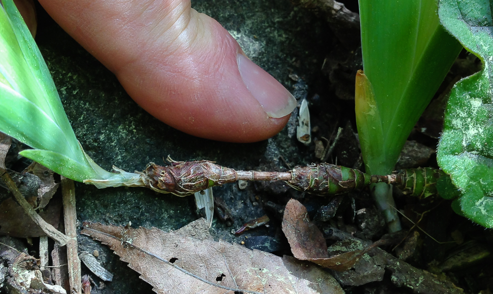 The rest of the plant parts are a bit more the usual…the true petals (often called standards in iris) are the smaller of the colorful parts, and most often stand in a more upright position than the falls. Like in most flowers, they serve to attract pollinators. The rhizomes are short and chunky and connected to one another by slender runners. The sword-like leaves are attractive even when no flowers are present.