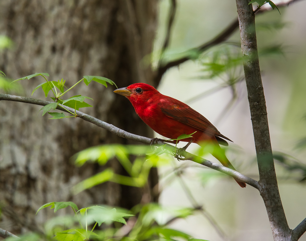 Red-tailed Hawk, Red-shouldered Hawk, Turkey Vulture, Yellow-billed Cuckoo (first of season), American Crow, Blue Jay, Red-bellied Woodpecker, Downy Woodpecker, Mourning Dove, White-breasted Nuthatch, Pine Siskins (still a few around surprisingly), Summer Tanager, Scarlet Tanager, Eastern Bluebird, Wood Thrush, American Goldfinch, Chipping Sparrow, White-throated Sparrow, Field Sparrow, Indigo Bunting, Carolina Chickadee, Tufted Titmouse, Northern Cardinal, Yellow-rumped Warbler, Black and White Warbler, Northern Parula Warbler, Blue-gray Gnatcatcher, Ruby-throated Hummingbird, Eastern Wood Peewee, Great Crested Flycatcher, Red-winged Blackbird.
