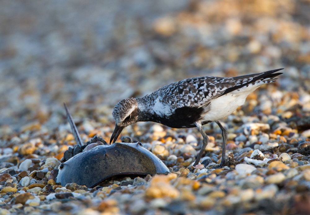 Black-bellied Plover gleaning food from a Horseshoe Crab shell (click to enlarge)