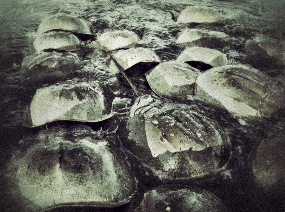 For most of the year, Horseshoe Crabs are out at sea, feeding on marine worms and softer shellfish such as Razor Clams. But every spring, adult Horseshoe Crabs migrate to shallow waters to breed. Annual census data highlights Delaware Bay as the most important spawning ground in the world for American Horseshoe Crabs. The 2011 survey estimated well over a million Horseshoe Crabs utilized these critical beach habitats. The peak of spawning activity usually occurs several days around the new and full moons of May and June and coincides with the high tides.