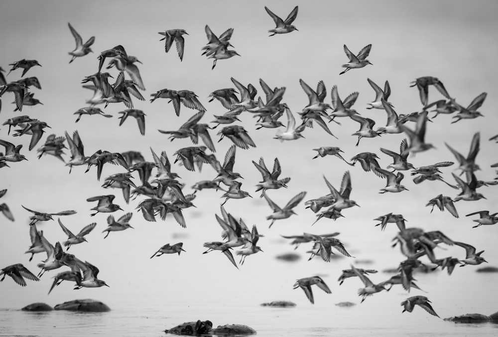 Shorebirds in flight at Slaughter Beach, DE (click to enlarge)