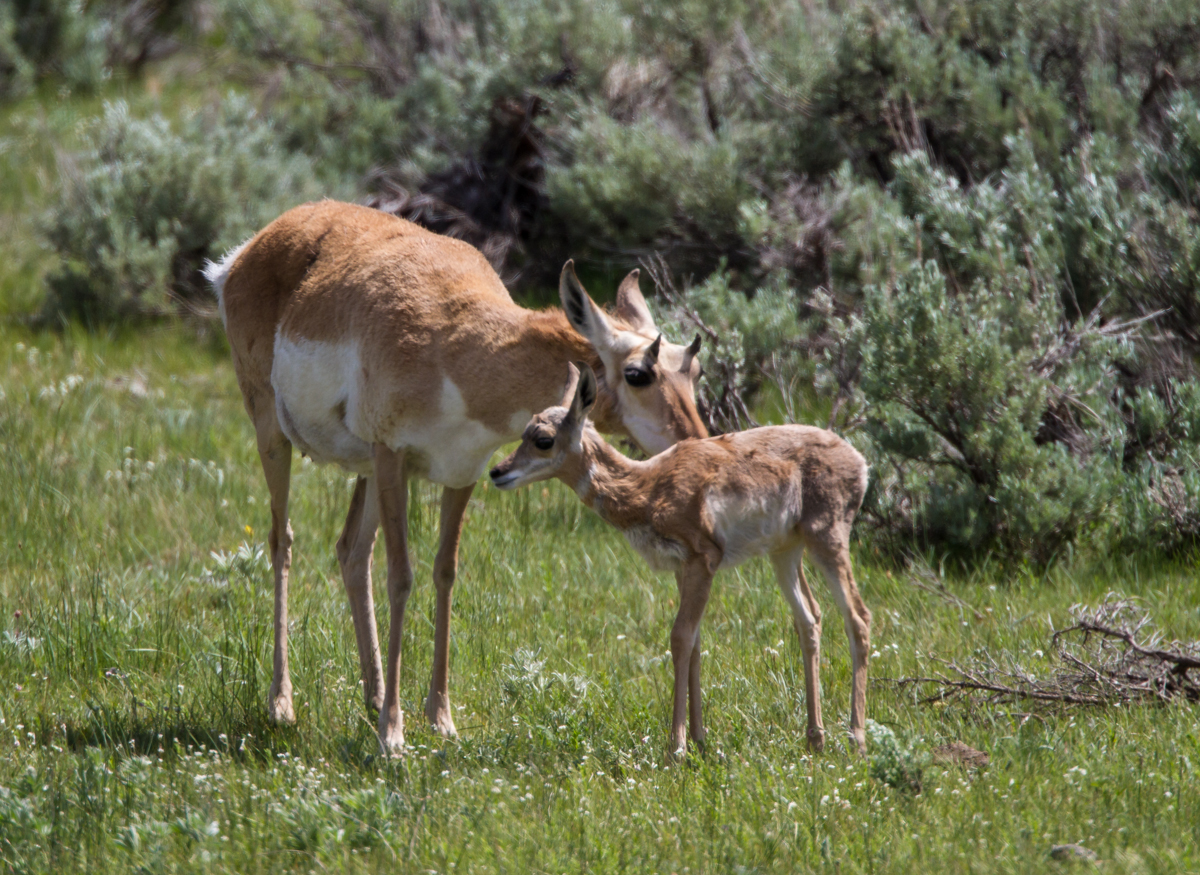 One of the changes I’ve noticed in the 25+ years I’ve been going to Yellowstone is an increasing number of Pronghorn in recent years. It used to be that you saw them mainly around the Gardiner area, but now they have greatly increased in numbers across the northern range, especially in Lamar Valley and Little America. Although the genus name, Antilocapra, means antelope and goat, Pronghorns are neither. They’re the only surviving member of a North American ungulate (hoofed mammal) family.