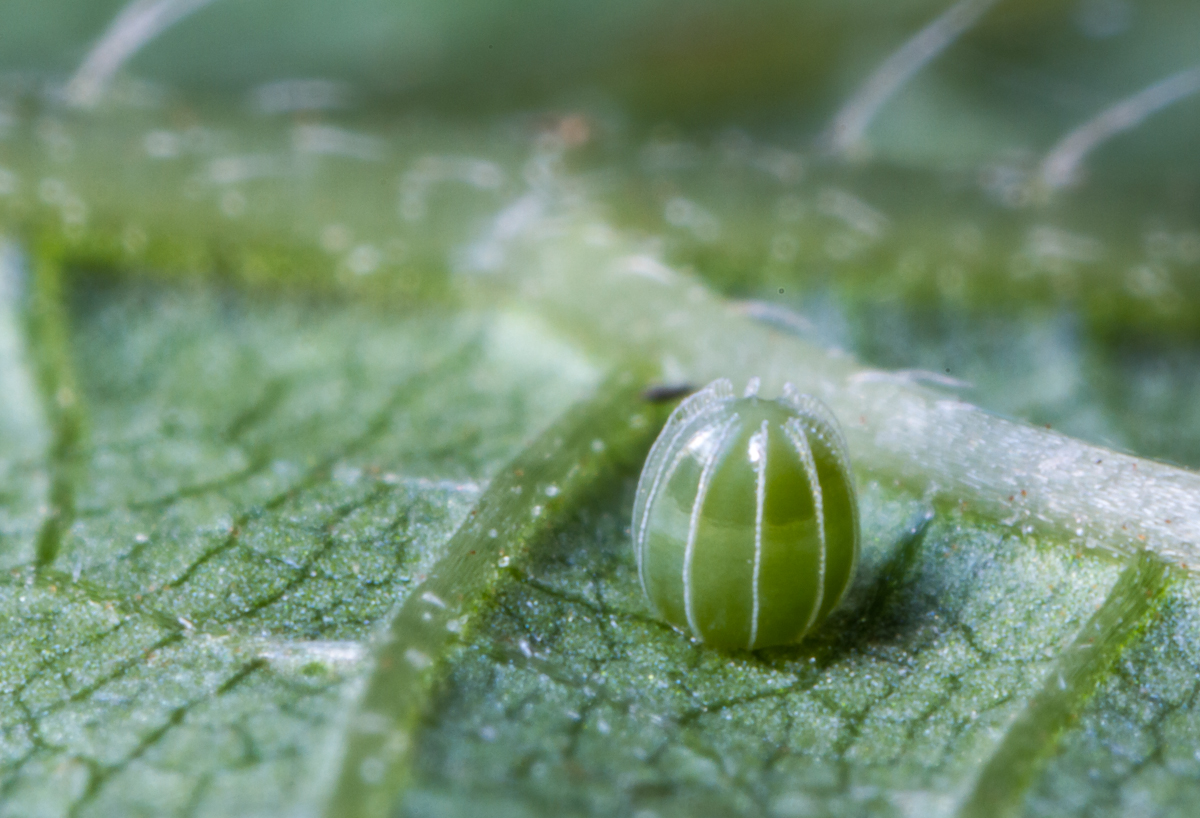 I went back outside and started turning over leaves looking for eggs and finally found one – a very small greenish egg sculpted with vertical ridges. The eggs of Question Marks and Eastern Commas are identical so seeing the egg-layer is important for identification. In reading about these two closely related species, I found an interesting note about their eggs – females often lay eggs in short stacks, one egg on top of the other, in stacks of a few up to 8 or 9 eggs. Naturally, I went back out to see if I could find any.