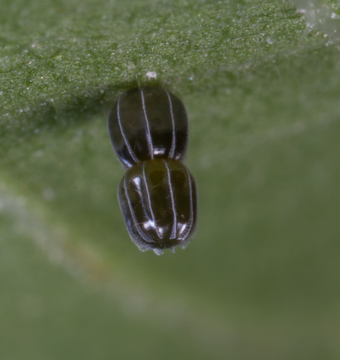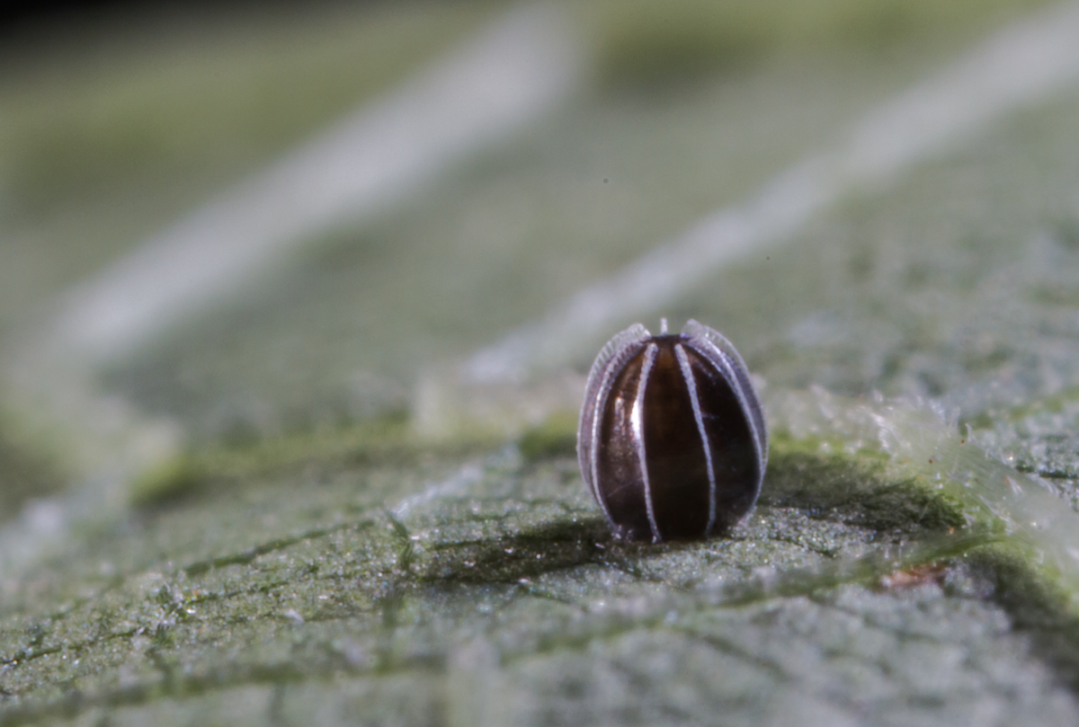 My first find was a single darker-colored egg on the same plant. I assume it is an egg that was laid earlier and may be getting ready to hatch as I have seen other species’ eggs darken prior to hatching. I suppose the other possibility is that the egg has been parastized by something. I’ll have to wait and see.