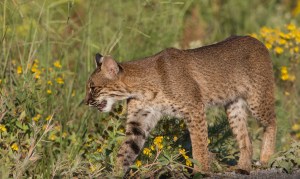 Bobcat steps into vegetation