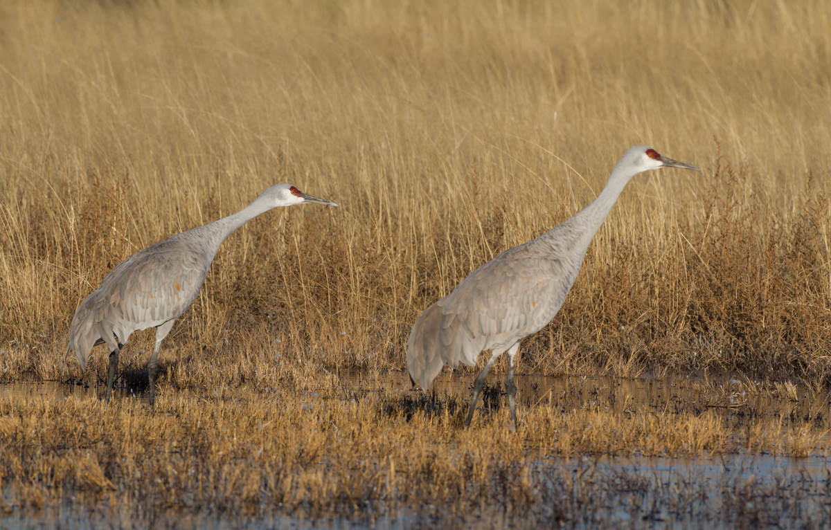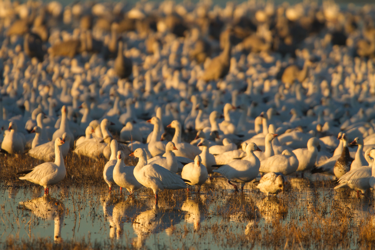 The middle of the day has notoriously harsh light, but is still a great time to search the refuge for other species or to watch interesting behaviors of the stars, the Snow Geese and Sandhill Cranes.