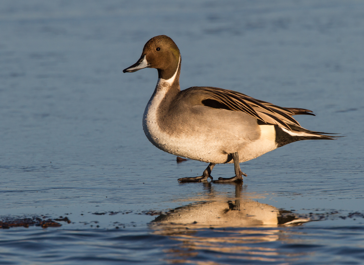 But there were birds to see, so after a quick stop at the visitor center (staffed by a cadre of helpful volunteers) time was spent watching a large flock of Northern Pintails (probably the most abundant duck seen) in a pool bordered by ice.
