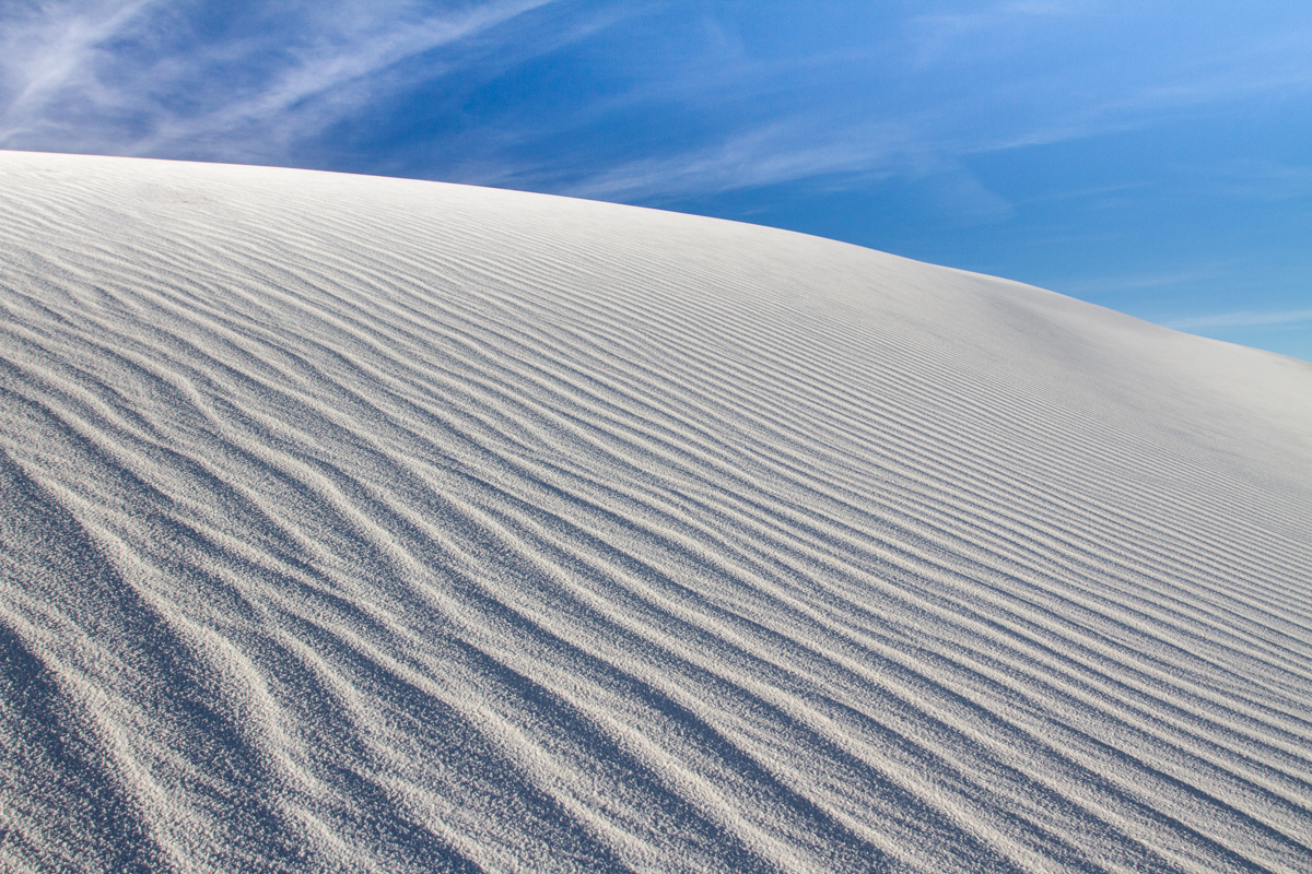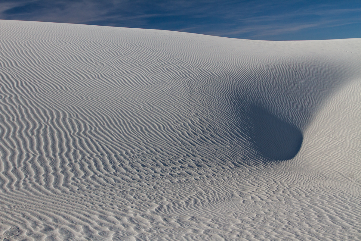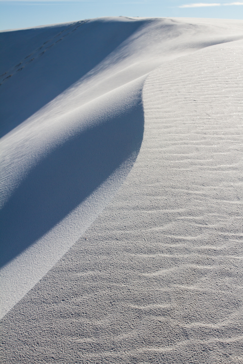 A couple of hours east of Bosque is another naturalist and photographer destination – White Sands National Monument. The original plan was to drive down one afternoon, hike the dunes at sunset, spend the night in the nearby town of Alamogordo, and then return at sunrise to photograph the dunes in morning light. That plan came apart when the chosen morning date was accompanied by one of the periodic closings of the monument due to missile tests at the adjacent White Sands Missile Range. So, only one afternoon was spent away from the birds at Bosque, but what an afternoon it was.
