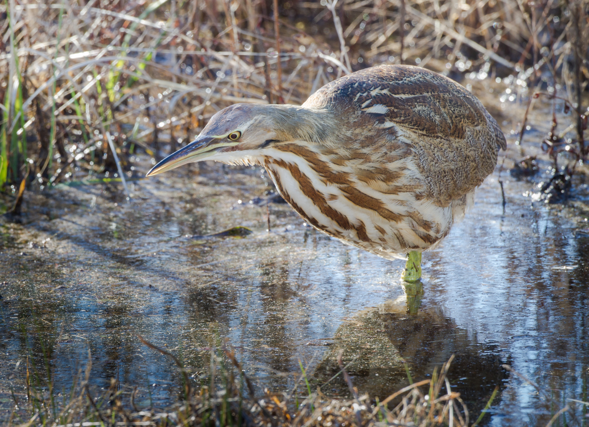 Another American Bittern soon revealed itself in a narrow strip of grasses along a canal and we used the car as a blind to photograph the bird for several minutes before it disappeared in a thick patch of vegetation. This year seems to be an especially good one for bitterns at Mattamuskeet.