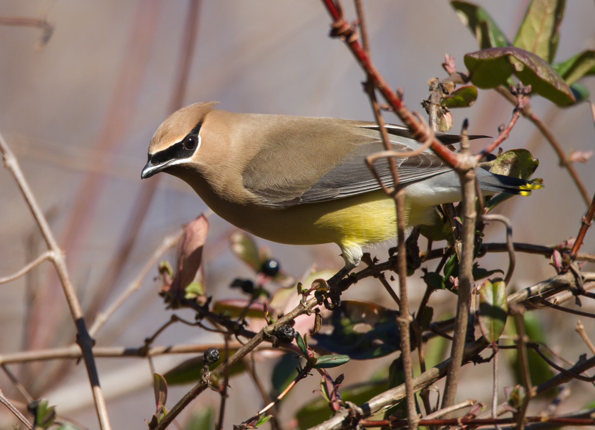 As we watched the herons, small flocks of Cedar Waxwings flitted by in their usual jerky flight pattern. Later in the day, we finally tracked some down as they swarmed the all-too-numerous fruit of the invasive Privet shrubs that line sections of the refuge’s roads. Always one of my favorite songbirds to observe, waxwings are often tough to photograph without a mishmash of twigs in the background.