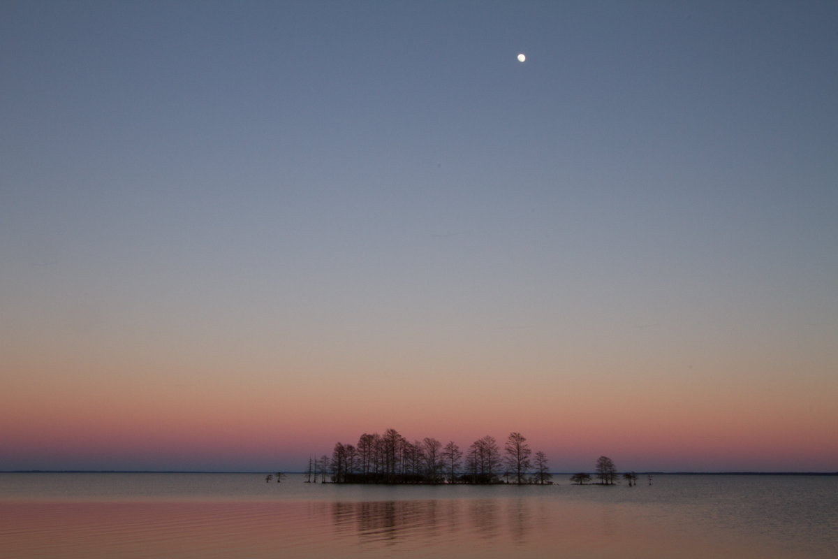 As the light faded, we stopped at the observation platform along the road crossing the lake. I wanted to enjoy the scene in the fading light at what must be the most photographed island of trees in the state. I always try to stop and view the sunrise from here if I am in the area, but sunset is equally compelling. As we stood watching the sky turn shades of pink and purple, I reflected on how lucky I am to share this incredible place with people interested in the beauties of nature.