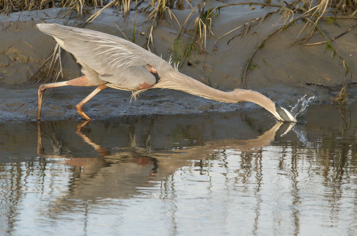 Another wader joined the ranks of the ibis and began searching the retreating water for its dinner. Although I was hoping for a big fish capture (it missed on this strike), the Great Blue Heron seemed content to snack on the Grass Shrimp as well.