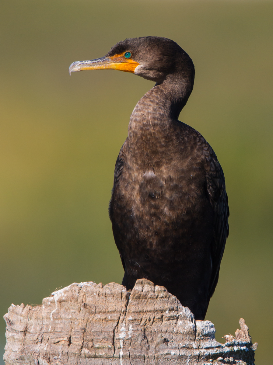 Double-crested Cormorants have a similar look and lifestyle to Anhingas. Note the intense green eyes.