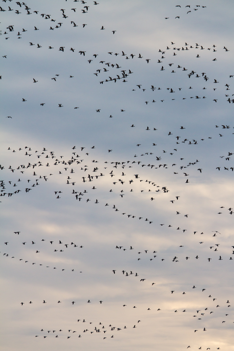 Once again, we stood in awe as the sky was filled with thousands of beating wings slowly descending to the fields. Here is a brief video of thousands of Snow Geese settling into the wheat fields, where hundreds of Tundra Swans are already feeding.