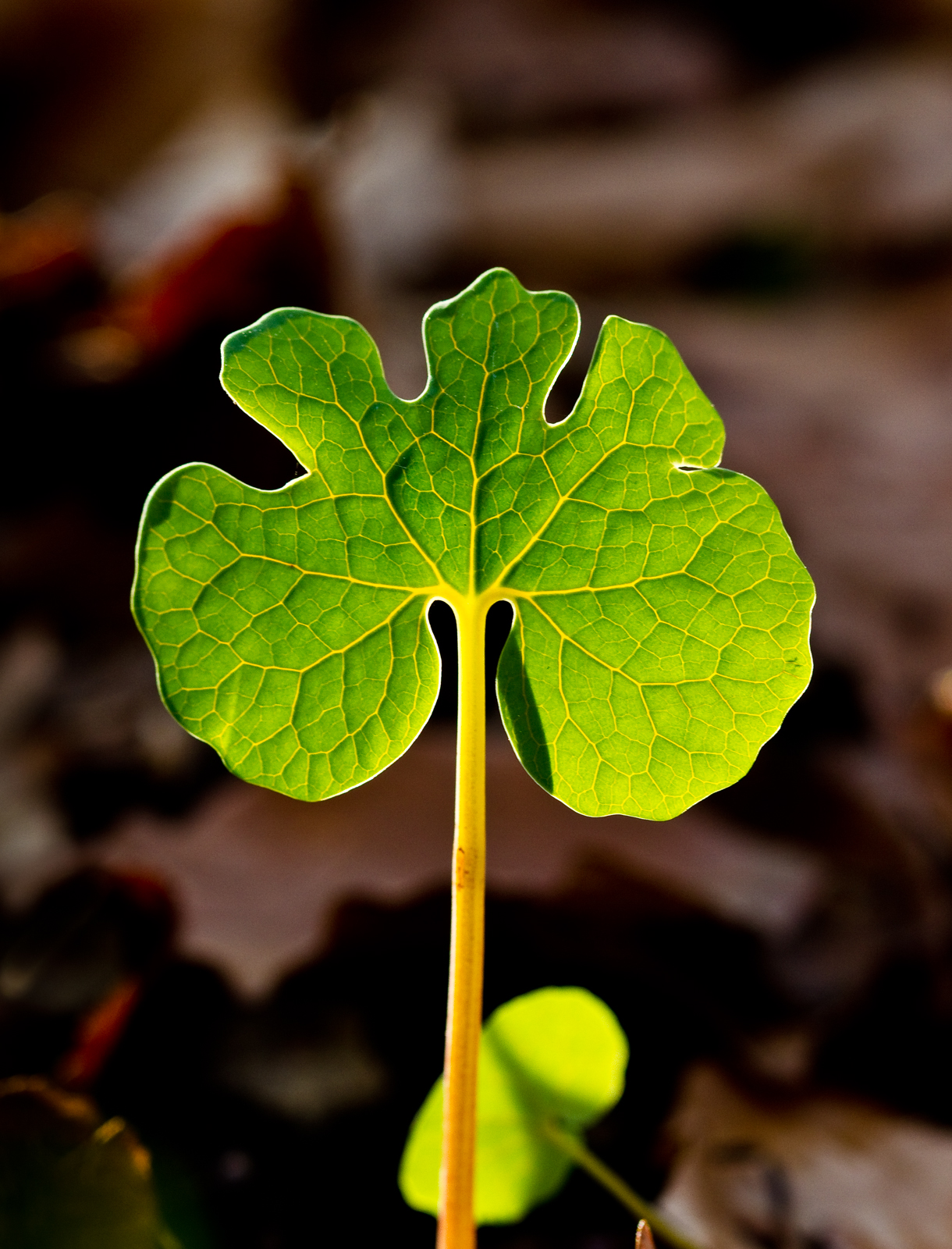 After the flower blooms, the leaf expands and often becomes horizontal. A couple of years ago, I came across a single leaf on a steep slope at Swift Creek Bluffs Nature Preserve, another Triangle Land Conservancy property. It glowed in the low angle light, highlighting the textured network of veins in the odd-shaped leaf. It was one of those moments when you simply are in awe of a small bit of nature. Even though their brief show is quickly passing in this part of the state, I hope to see more Bloodroot on upcoming trips to the mountains, as spring progresses up the slopes. Each encounter is time-well spent with a ephemeral woodland beauty.