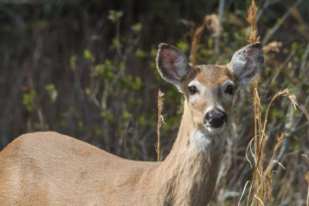 We encountered several deer over the course of our stay along with a variety of birds from Wild Turkey displaying along the roadsides, to American Coot and Pied-billed Grebes feeding in the impoundments. While watching the latter that first afternoon, we spotted some dark objects in a tree on the far side.