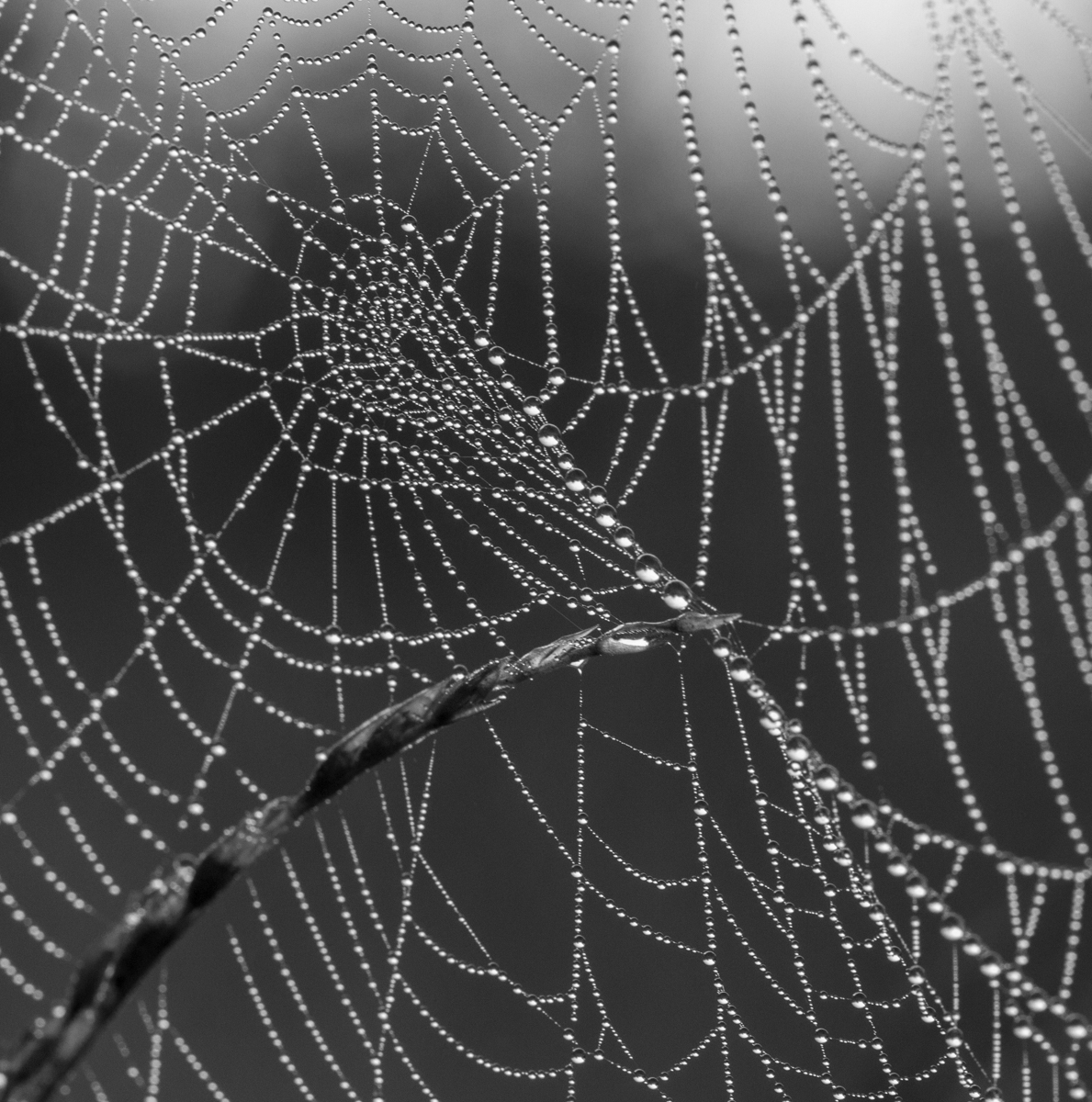 I awoke this morning to a dark cast out my window. Where normally there are sunbeams streaming through the trees, there were none. As I sipped the first mug of coffee, the news warned of dense fog for those who must commute. I thought to myself…this would be a good morning to get wet on a walk…so I grabbed the camera and took a stroll in the meadows under the power line. Spiders had been busy, creating art for any to appreciate, if you only take the time.