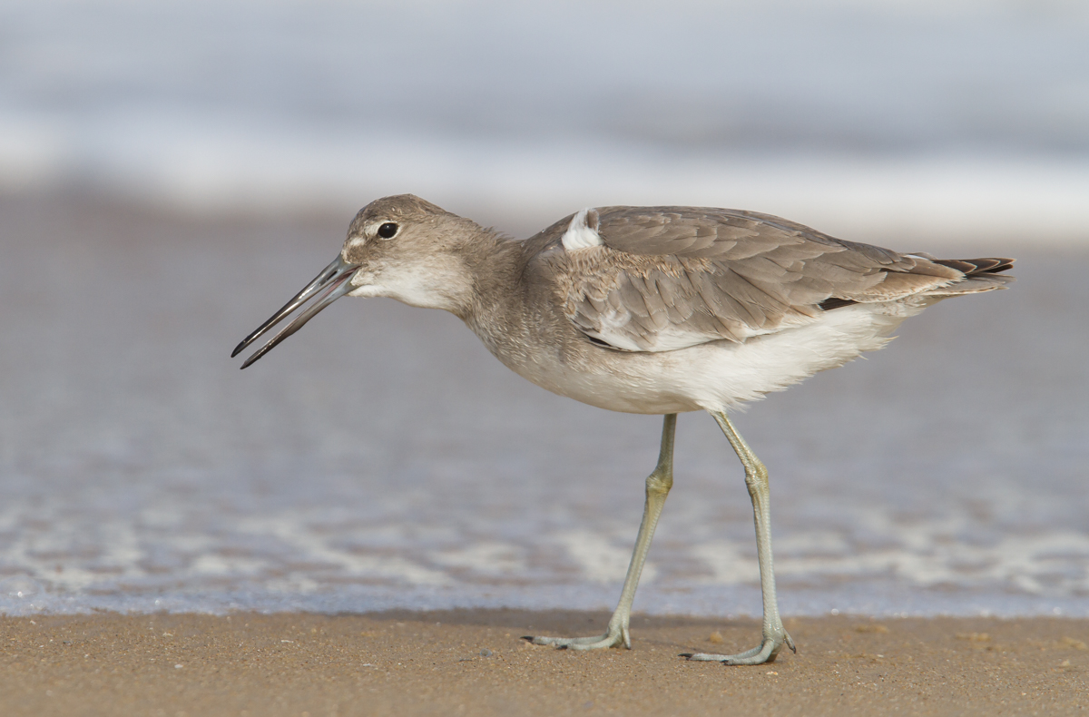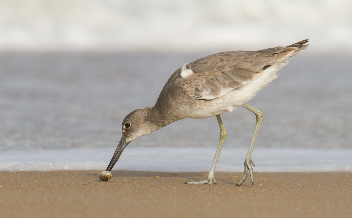 This particular Willet was quite adept at finding and catching the Mole Crabs as they surfaced to ride the wash from the surf back down the beach.