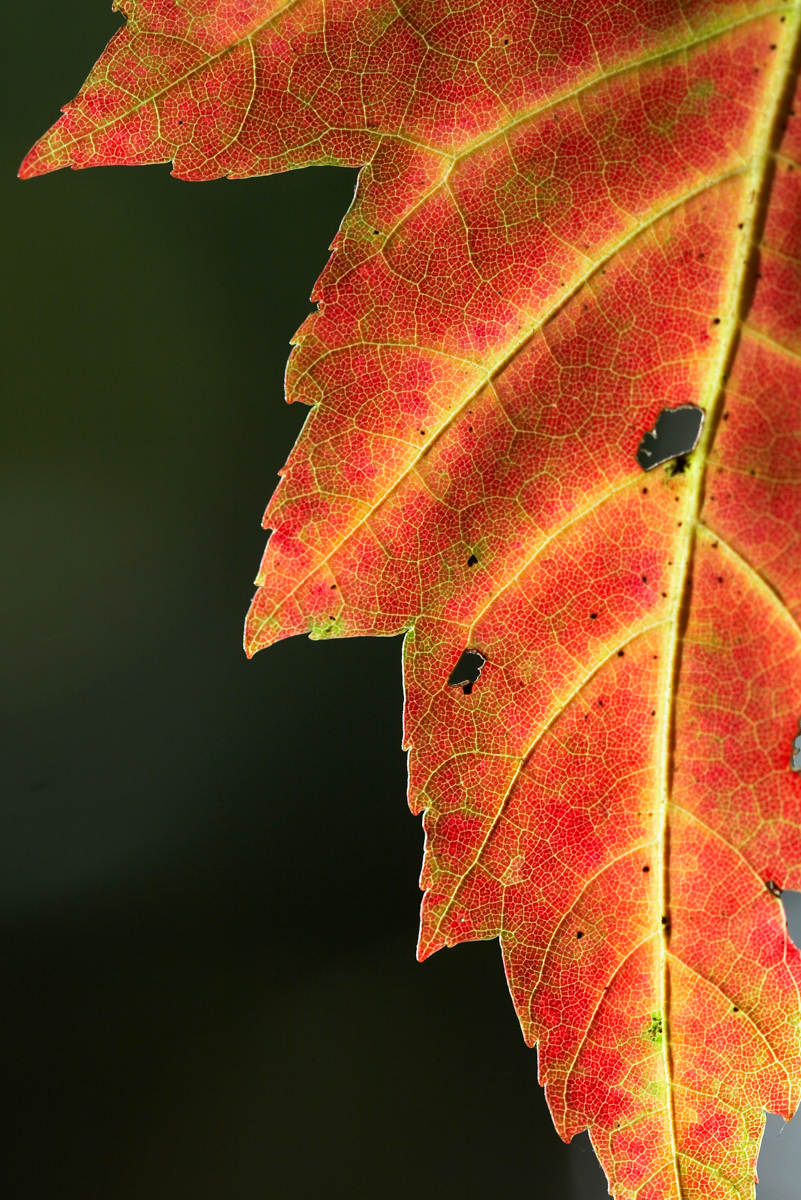 These past few weeks when the colors have peaked in this area I have been very busy, and have not been out as much as I would have liked to capture the beauty. So, I went back in time to the files of previous Fall photos to bring out a few taken in the woods of Chatham County. Most are taken late in the afternoon on windless days. I especially like to shoot leaves that are back lit by the setting sun, as it really highlights their textures and imperfections. I only wish the show lasted a little longer…the strong winds and rain coming in the next few days will surely cause the few remaining colorful leaves to drop, leaving only the reddish browns of the oaks out front to hang on into winter. And we will all have to wait until the next leaf season to marvel at the dazzling beauty in the trees around us.