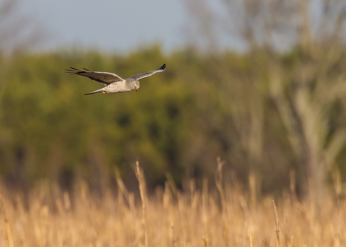 The male Northern Harrier finally sailed by my side of the field, gliding on his large wings, head down, looking for a bird or small mammal.