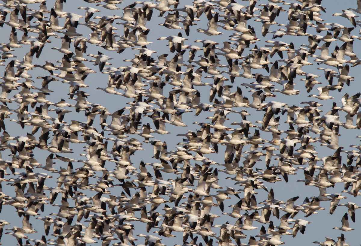 One thing that will always flush the flock is an eagle. Finally, from behind the cloud of flapping white and black, a flapping black and white appeared – a Bald Eagle.