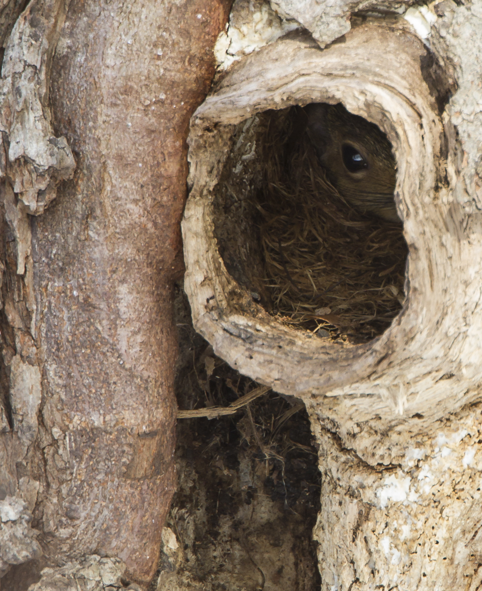 Yesterday afternoon I went out looking for a photo opportunity and ran across this cavity in a maple tree out front. I have seen squirrels running in and out on occasion, so I decided to wait awhile and see what might happen.