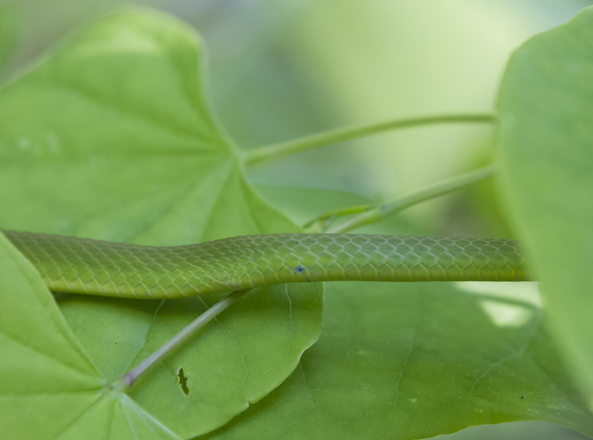 Mike, not long after you posted this blog about the vine that wasn’t, I came across a Rough Green Snake that seemed to be sunning himself or just resting in the middle of a crushed gravel path in the art park at the NC Museum of Art! He was so pretty it was all I could do to keep myself from walking right up to him for a better look.
