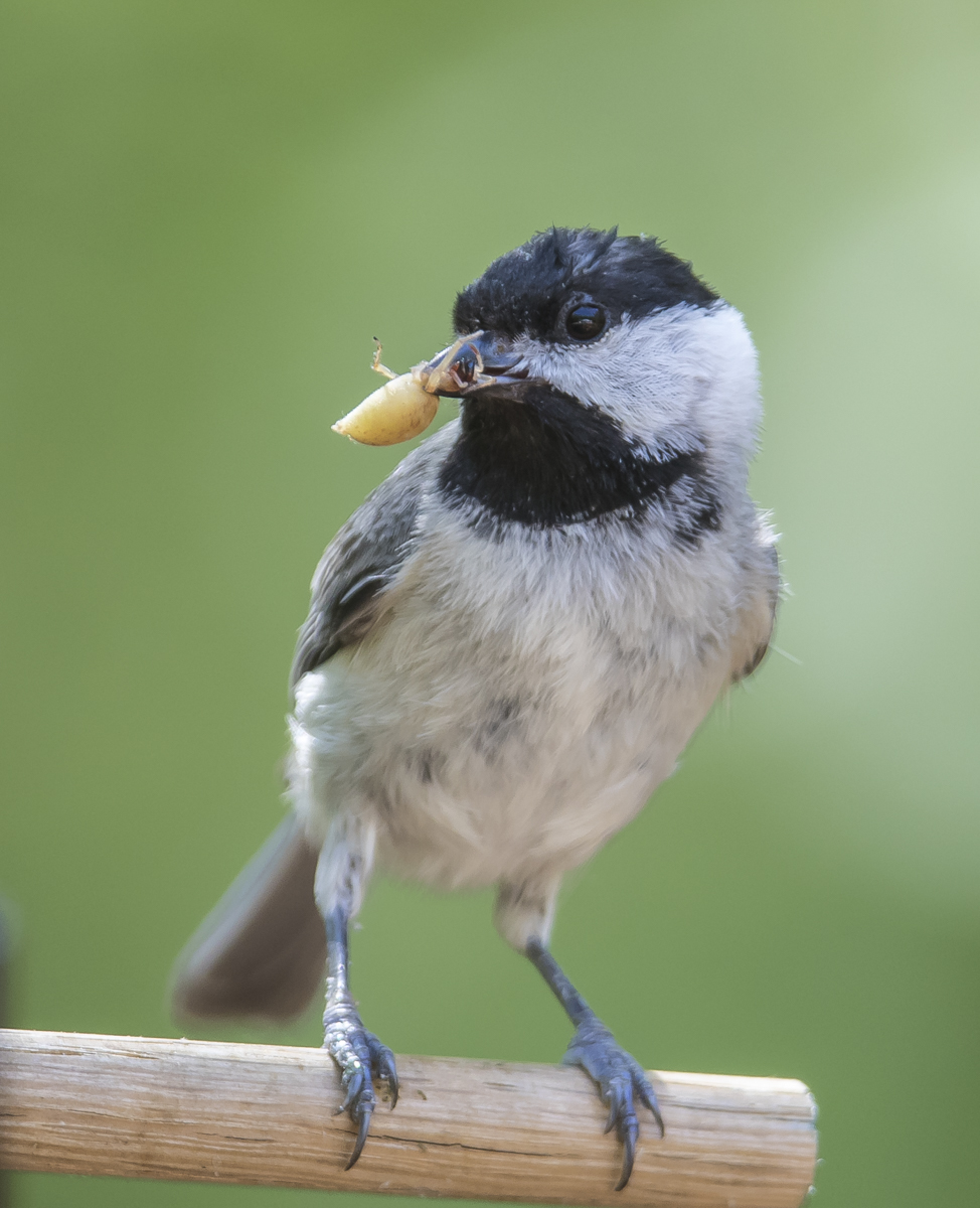 Of course, Thoreau was speaking of Black-capped Chickadees, found throughout much of the northern half of the United States and down into the Carolinas in the higher elevation mountains. This week I have been watching and trying to photograph the look-alike southeastern species, the Carolina Chickadee. I am working on a project trying to film the food items that some of our local bird species feed to their nestlings to show the importance of native plants as habitat for the food that birds need to catch to successfully raise their young. I was asked to start with Carolina Chickadees, probably due to their endearing nature and widespread distribution and association with human habitats. It is a bird that most people recognize and appreciate.
