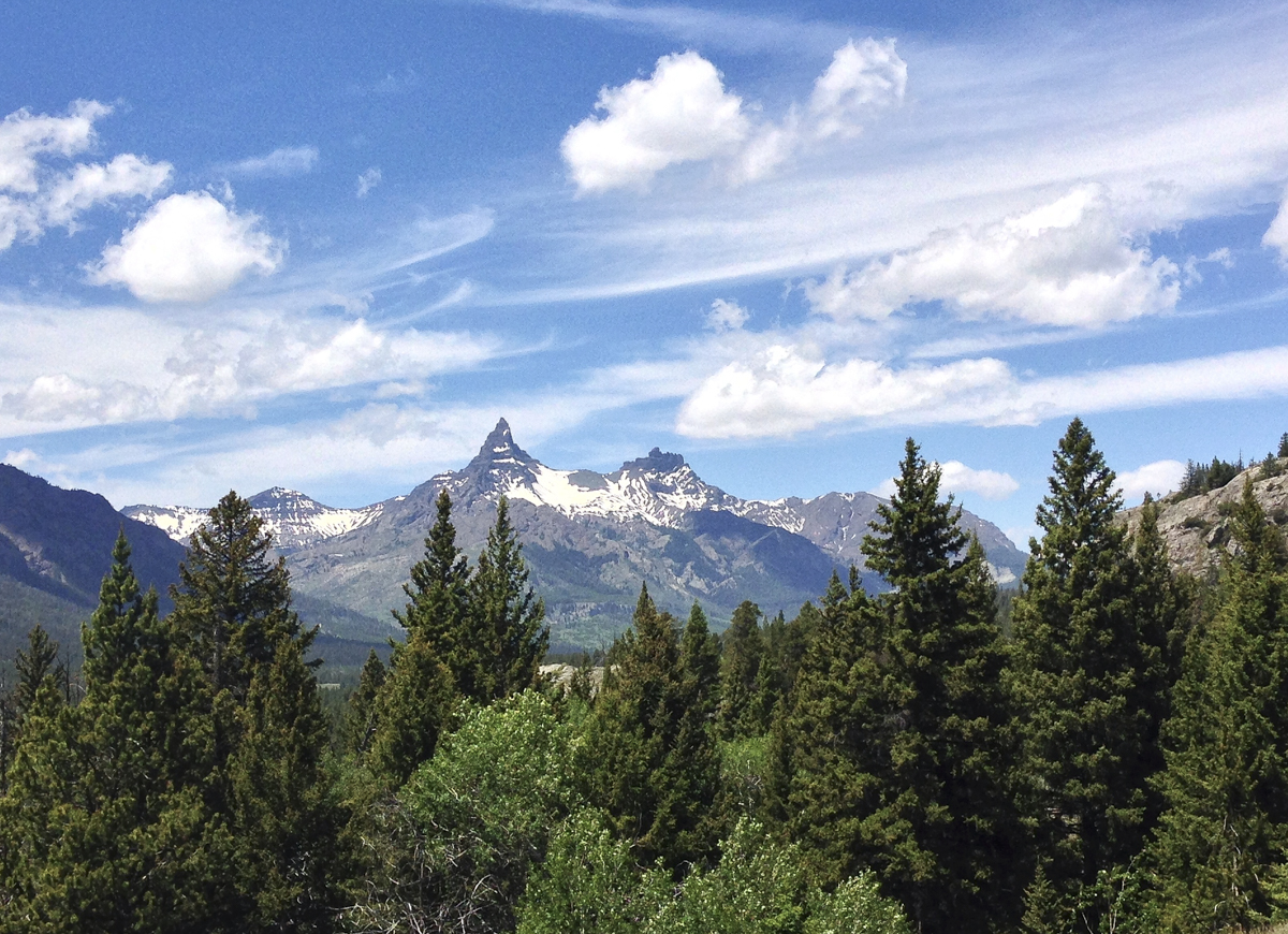 I had originally planned a trip to the Beartooths on the last full day of our trip, but a variety of factors caused me to move up that plan and we headed north a few days early. A quick stop for lunch at a scenic pullout gave us time to admire the view, taking in two prominent glacial-carved peaks – Pilot and Index. As we gained elevation we passed the beautiful aquatic mirror known as Beartooth Lake. But as we climbed higher, I could see the top of the mountain was shrouded in clouds. Hoping it would clear, we kept driving.