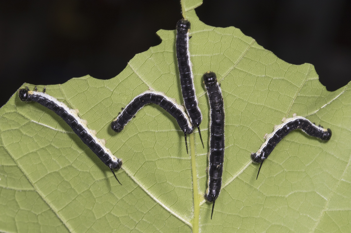 As with most members of the Family Sphingidae, the larvae are adorned with a prominent tail spike, which seems exaggerated on the early instars.