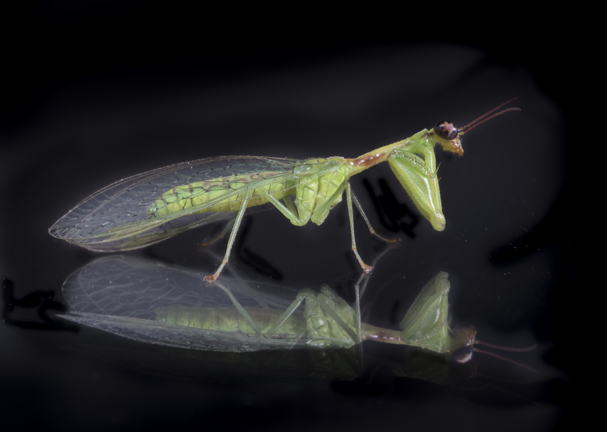 The Green Mantisfly looks like a cross between a lacewing and a mantid