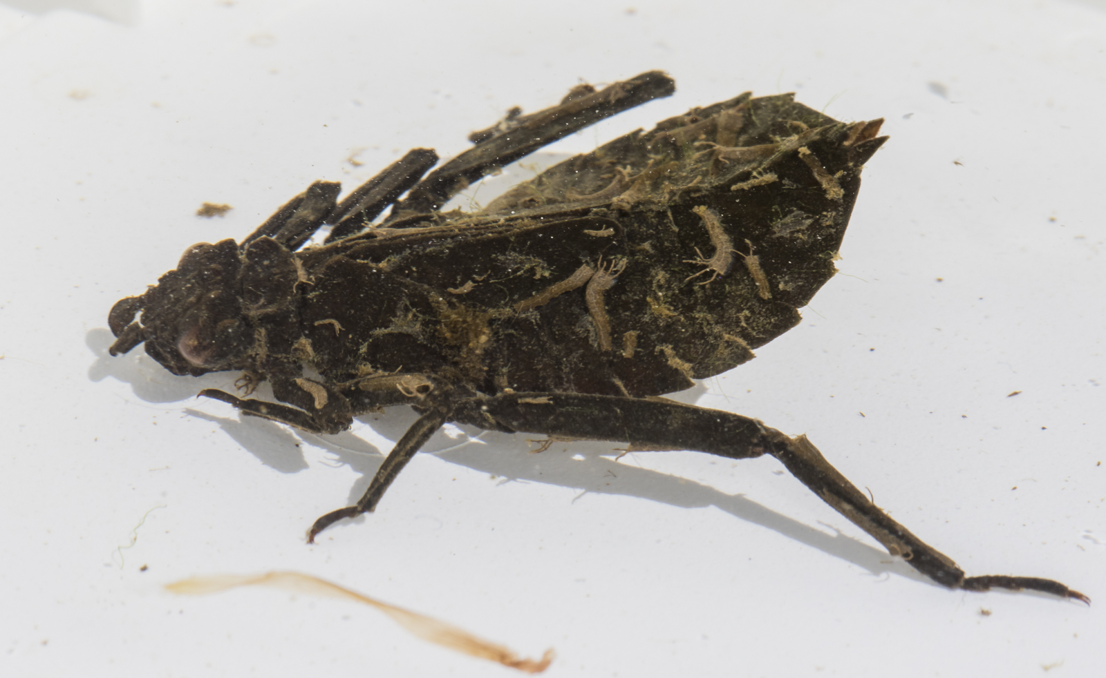 In that same spot, we found another, smaller, dragonfly nymph. Something we noticed about both of our dragonfly specimens was the abundance of tiny tubes covering their body.