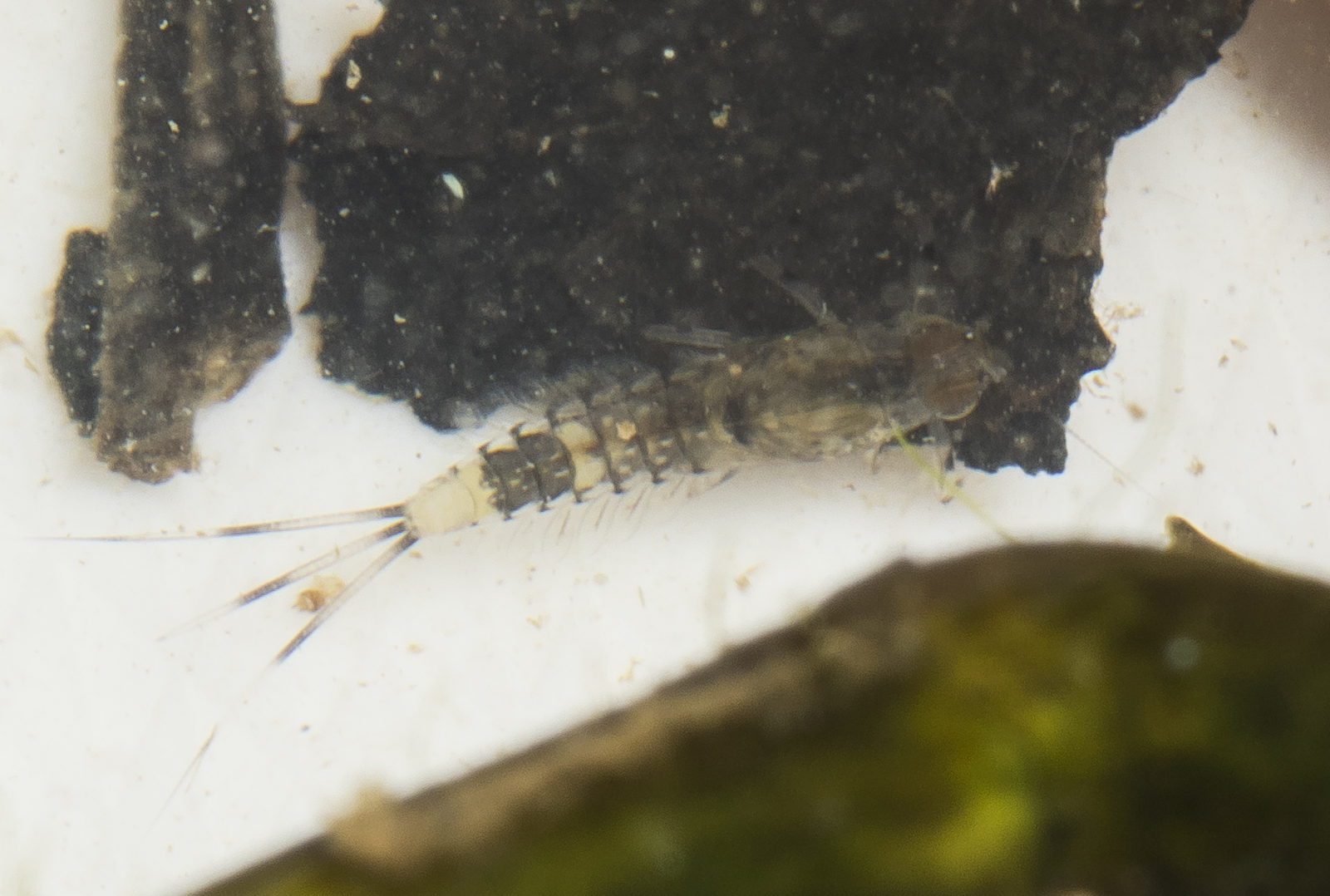 As it turned out, mayflies were, by far, the most abundant organism we collected.And most of them were very small ones that resembled this tiny guy. I am not sure, but I think it is a member of the family Baetidae, one of the most abundant types of mayflies in North Carolina.