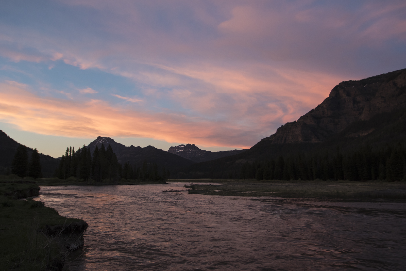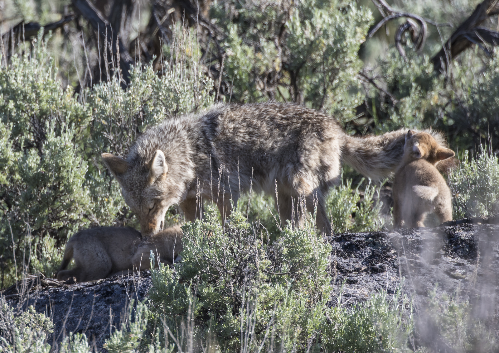 Or watch the family life of predators like these coyote pups tugging at their parent’s tail or a group of nine wolf pups tussling in a grassy meadow. Scenes of predator and prey, sky and water, life and death, scenes of beauty, moments of peace, time to reflect…that is some of what an experience in a place like Yellowstone provides. It is something we need in times like these, what we all need, to help us see the good in the world, and in ourselves.
