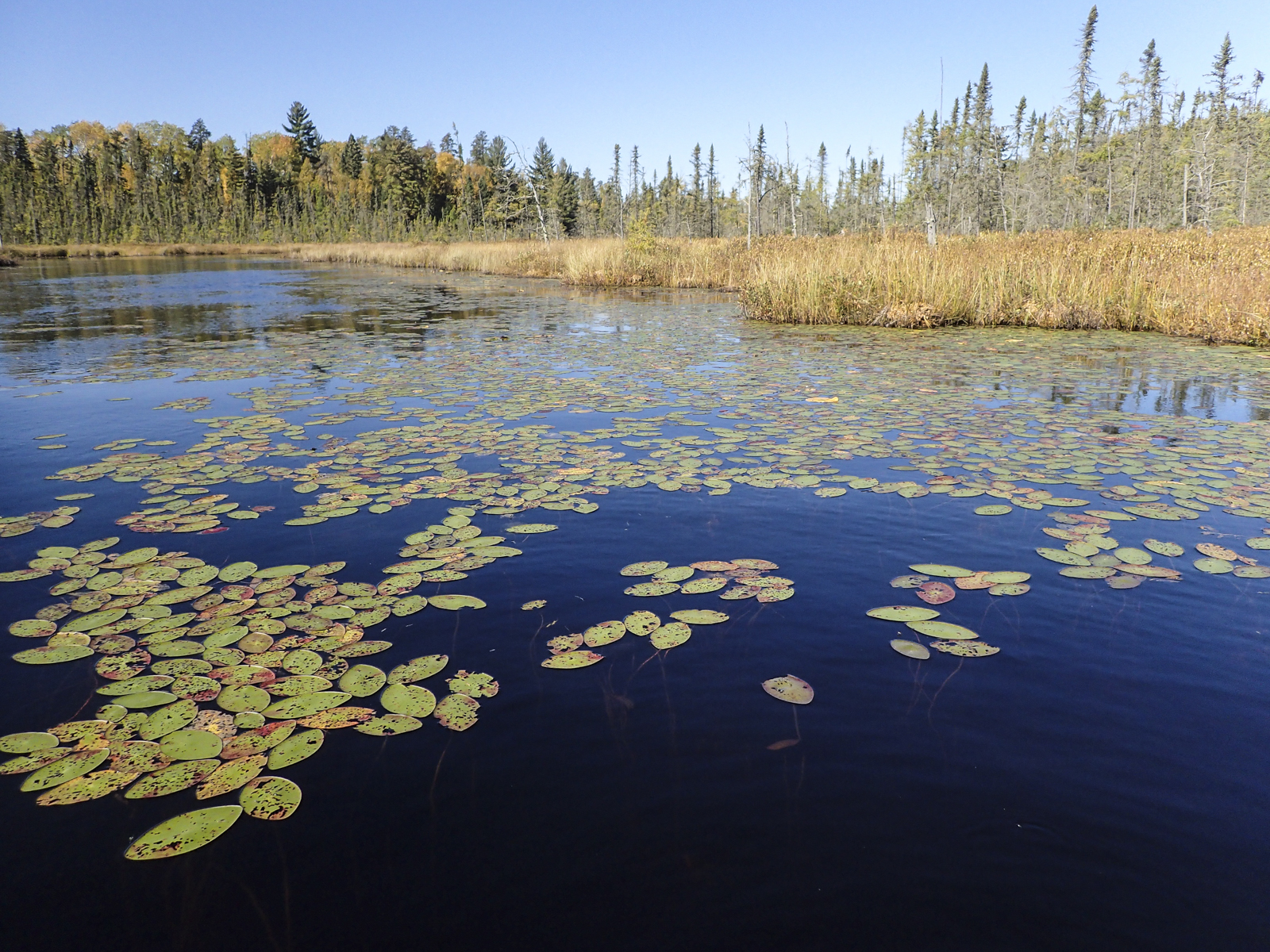 We chose the Moose River North to Mudro Lake route based on conversations with the outfitters and research online. It was deemed a bit more difficult, but is purportedly one the guide’s favorite routes due to the remoteness and diversity of habitats traversed. We would end up paddling about 40 miles and portaging 20 times for a distance of over 4 miles, with one portage being a little over a mile in length (something to look forward to…not). The outfitters provide a shuttle service so we left a car at the take-out and rode to the put-in with the shuttle driver. I admit to being surprised at the number of vehicles in both parking lots on a Thursday morning, but the BWCA is a very big place (over a million acres of designated wilderness) with over 1200 miles of canoe routes. We started with a half-mile portage from the road before we could drop the canoe in the water.
