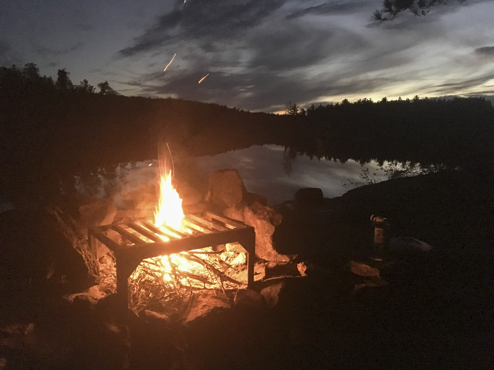 The outfitter had recommended campsites along the route but we were free to choose our own (you cannot reserve campsites, even though a permit system exists for entry into BWCA to limit the number of people in any one area). Each lake we traversed had one, or often, many more campsites, each with a US Forest Service installed fire grate and portable toilet.