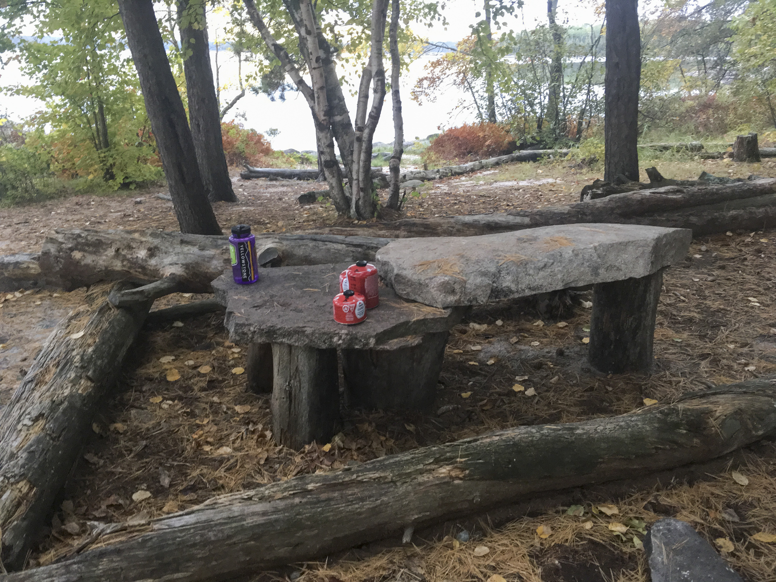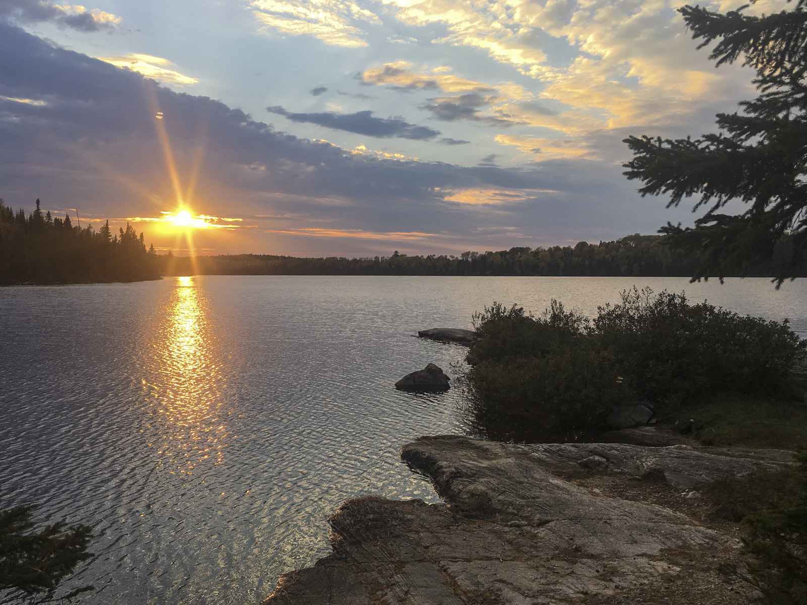 Our weather was extraordinary for this time of year with temperatures ranging from the 60’s each day to the 40’s at night (a bit colder the last two days with a strong wind). We had only one evening and morning with rain, so consider ourselves lucky. We saw at least one canoe every day but one, and had a lake to ourselves for two of the camps. Most campsites are incredibly beautiful with direct views onto the water and usually a large rock outcrop access for easy swimming (short, chilly swims this time of year). There is plenty of downed wood for small fires each night (and birch bark from downed trees is one of the best fire-starters imaginable). Plus, if you are so inclined, many of the lakes offer excellent fishing for walleye and pike. This really is a paddlers’ paradise.