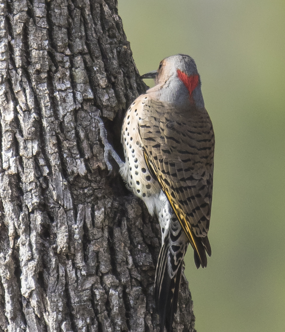 Flickers really are beautiful birds when you get a chance to study their varied plumage. The red heart-shaped patch on the back of the head is particularly pleasing. Many of the small black dots on the breast are also heart-shaped. Perhaps a bird better suited for Valentine’s Day than Christmas.