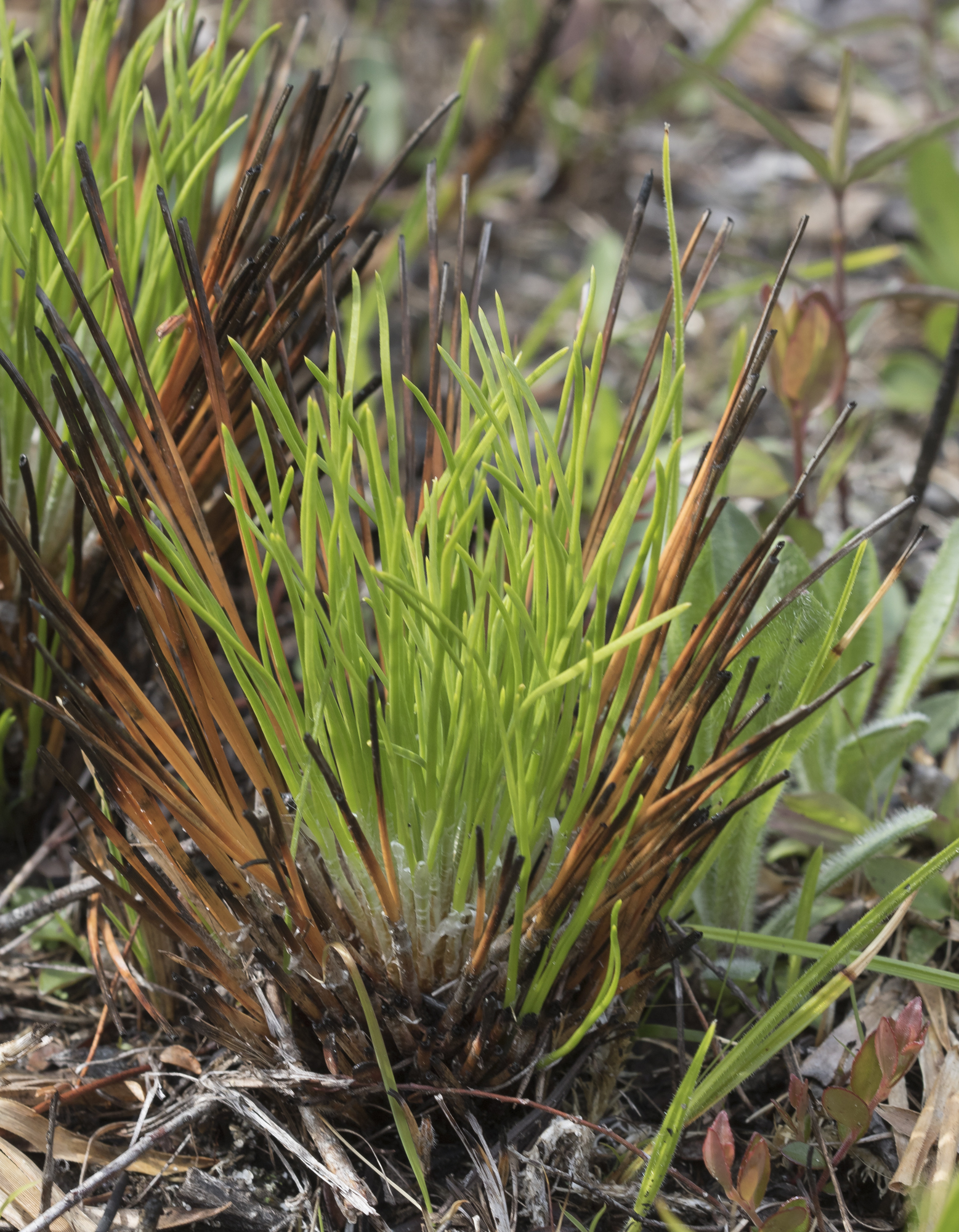 Scientists estimate natural lightning-caused fires once occurred on average every 3 to 7 years in much of the Coastal Plain. Years of fire suppression shifted the balance in plant communities to favor more deciduous species like turkey oaks at the expense of longleaf pines and the associated savanna species. Regular burns are helping turn this around, allowing the fire-adapted species to once again thrive. At both sites, we saw evidence of the adaptability of the many growth stages of longleaf to the effects of fire (see Melissa’s post from last year on longleaf). Plenty of singed needles, but the majority of growth tips survived, helping create a patchwork of green in the charred landscape.
