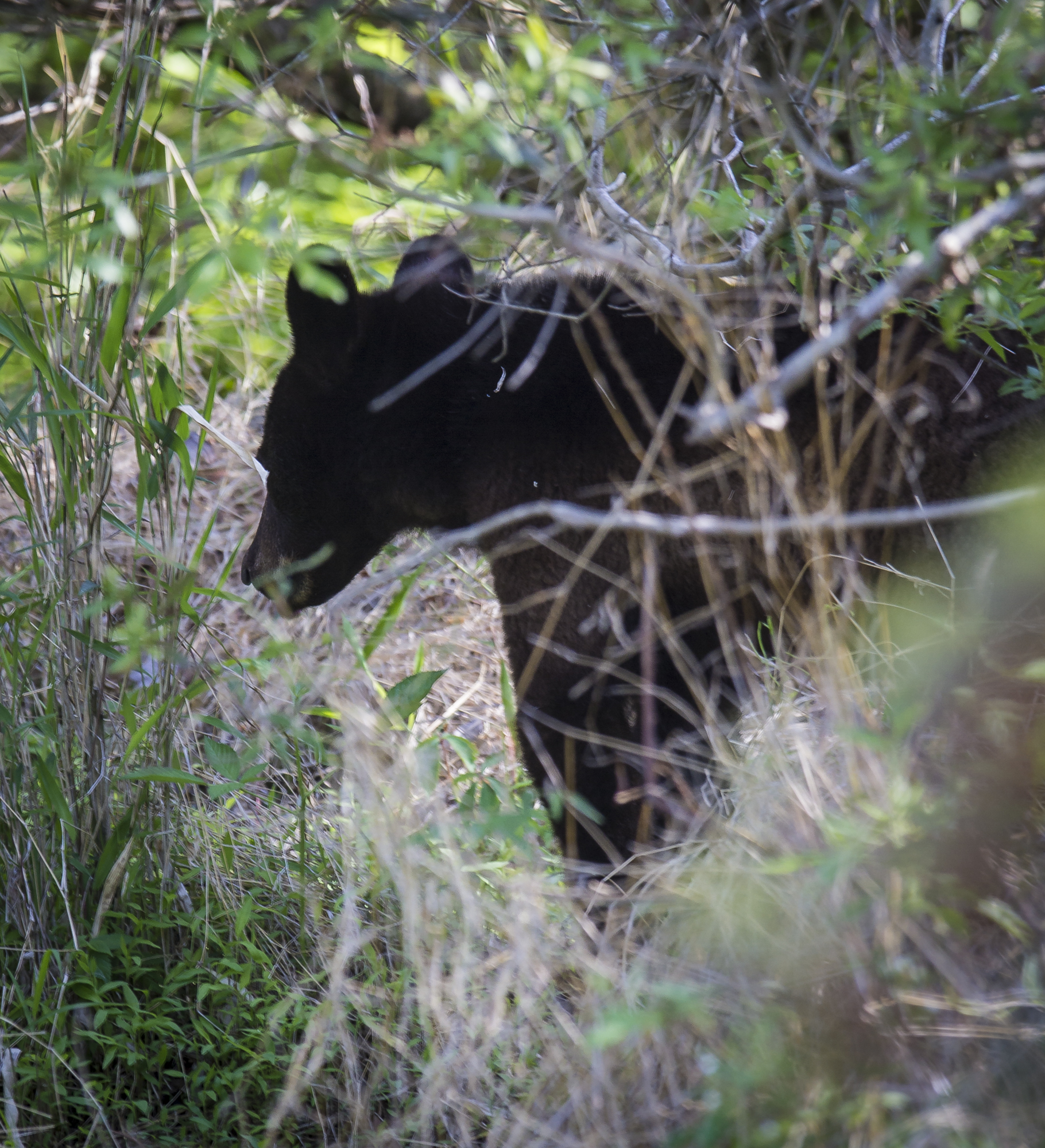 I think that sentiment is one of Melissa’s primary views of how to live a life. But, even she was a bit reluctant to head out early Saturday morning for a day trip to Pungo. We have both had full schedules at work these past few months with no let up in sight. We had planned this trip as a weekend get-away to meet our friend, Petra, and a couple from the Netherlands that had been clients a few years ago. Plans changed, and we decided not to camp and just do a day trip. We left about 7 a.m., arriving a little after 10 a.m., and found our friends alongside the road after having seen one large bear out in a field. But, they anticipated more now that the ‘bear whisperers” were here (no pressure there). So, off we went, and, luckily, there they were – a family of four bears just down the road.