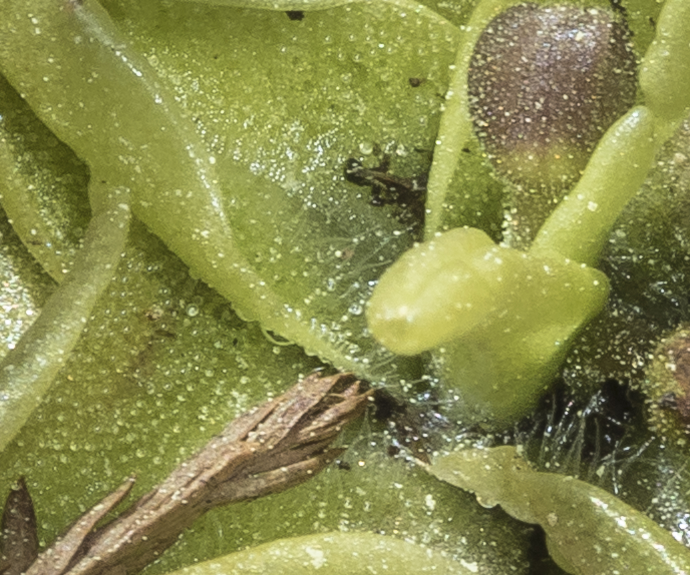 The leaves of butterwort use two specialized glands, scattered across the leaf surface, for prey capture and digestion:
