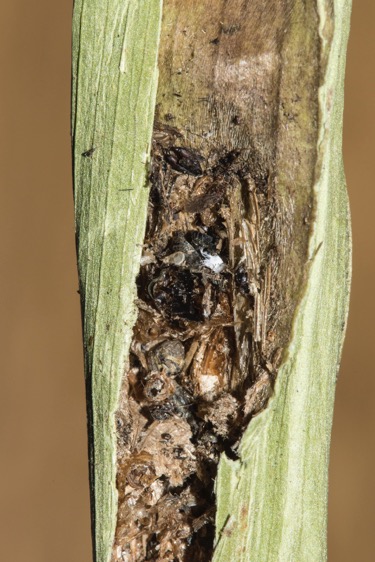 The larvae of a small, non-biting mosquito (Wyeomyia smithii) and a midge (Metriocnemus knabi) live in the liquid in the pitcher, somehow withstanding the digestive enzymes that kill other insects.