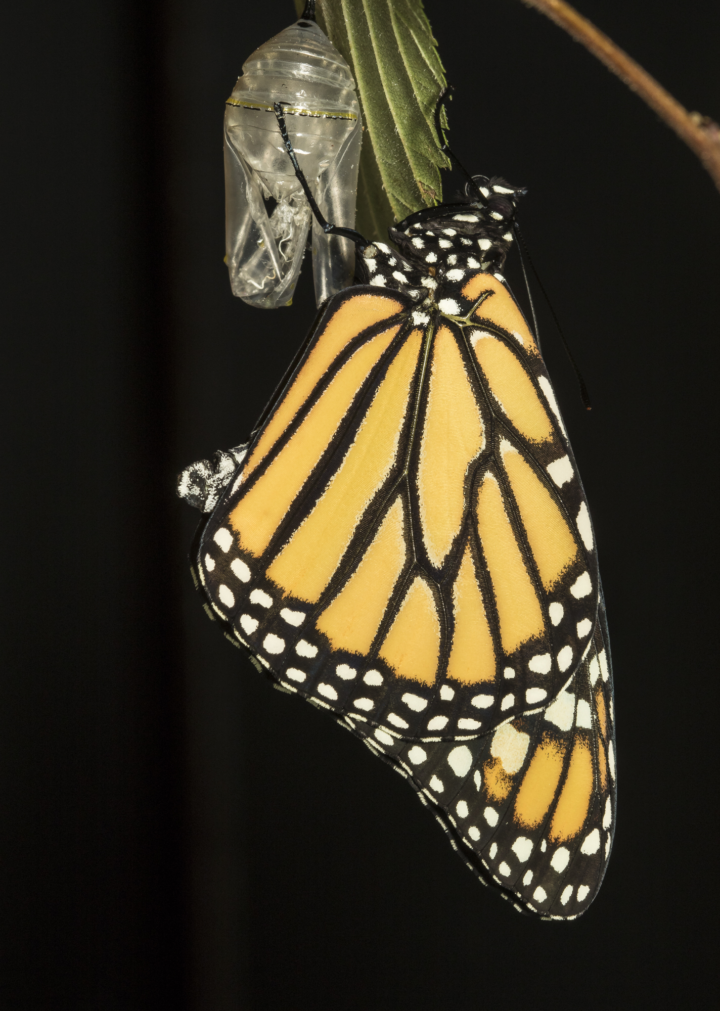 Monarch butterfly shortly after emergence from its chrysalis (click photos to enlarge)