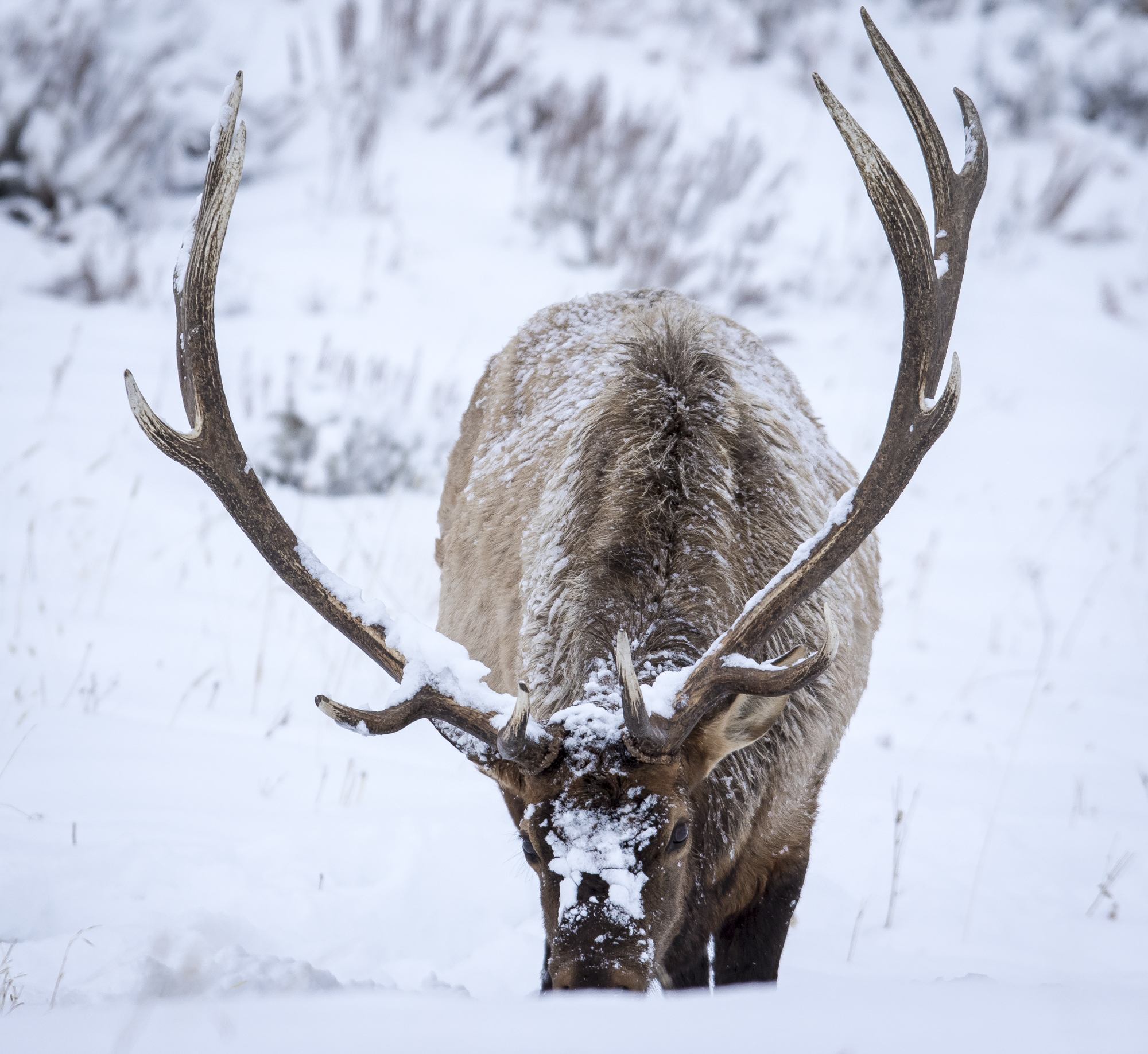 Our first full day with our friends was spent traveling the northern range looking for wildlife on our way to visit our friends in Silver Gate, the Hartman’s. The fresh snow made for some photogenic portraits of the wildlife we saw, mainly bison and herds of elk.