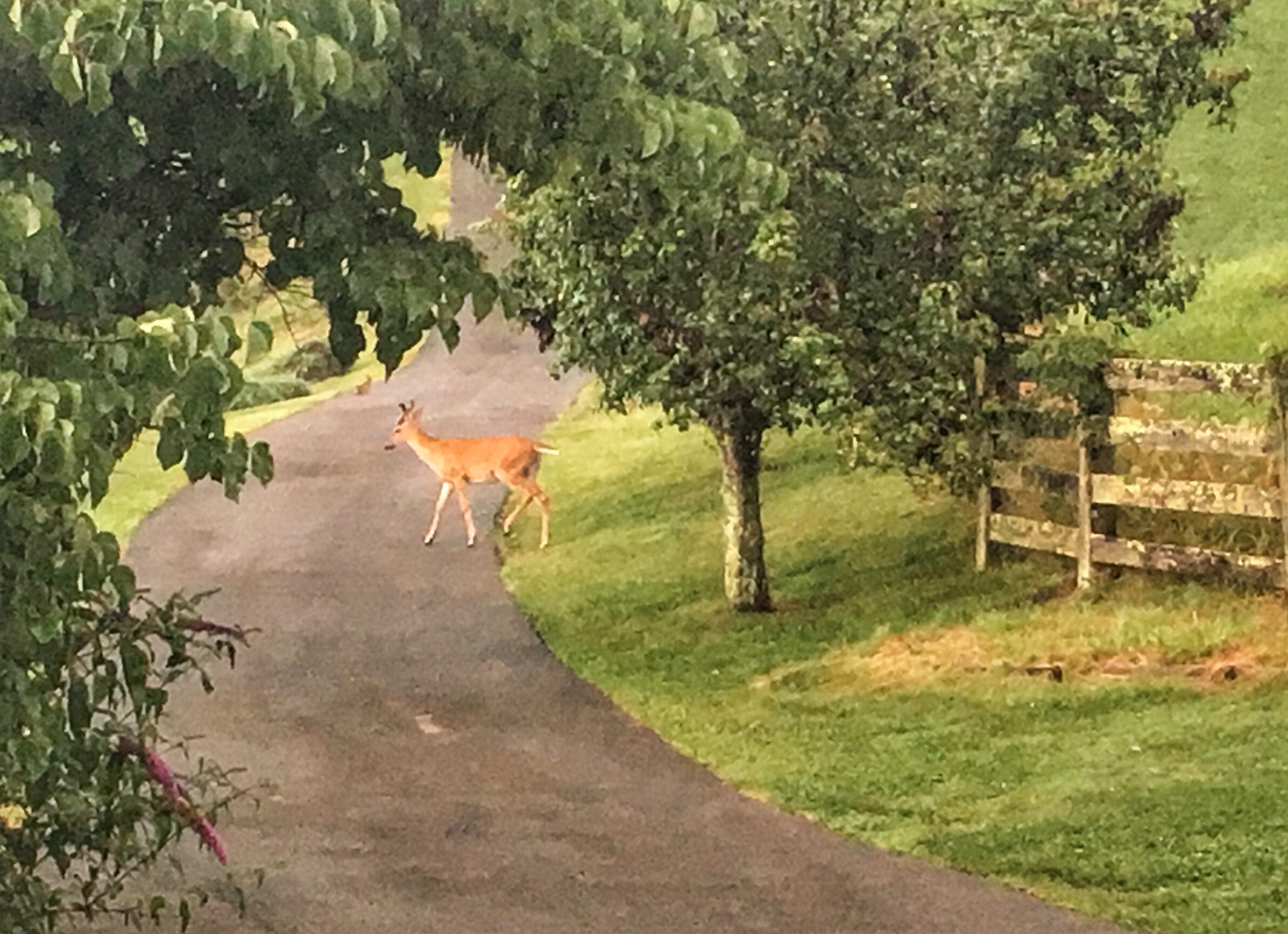 Every morning, while sipping my coffee, I see several deer, rabbits, birds, the occasional fox squirrel, and some ground hogs out along the field edges, especially under the many fruit trees that are starting to drop some of their heavy load of apples, pears, or peaches…a bear banquet in the making.