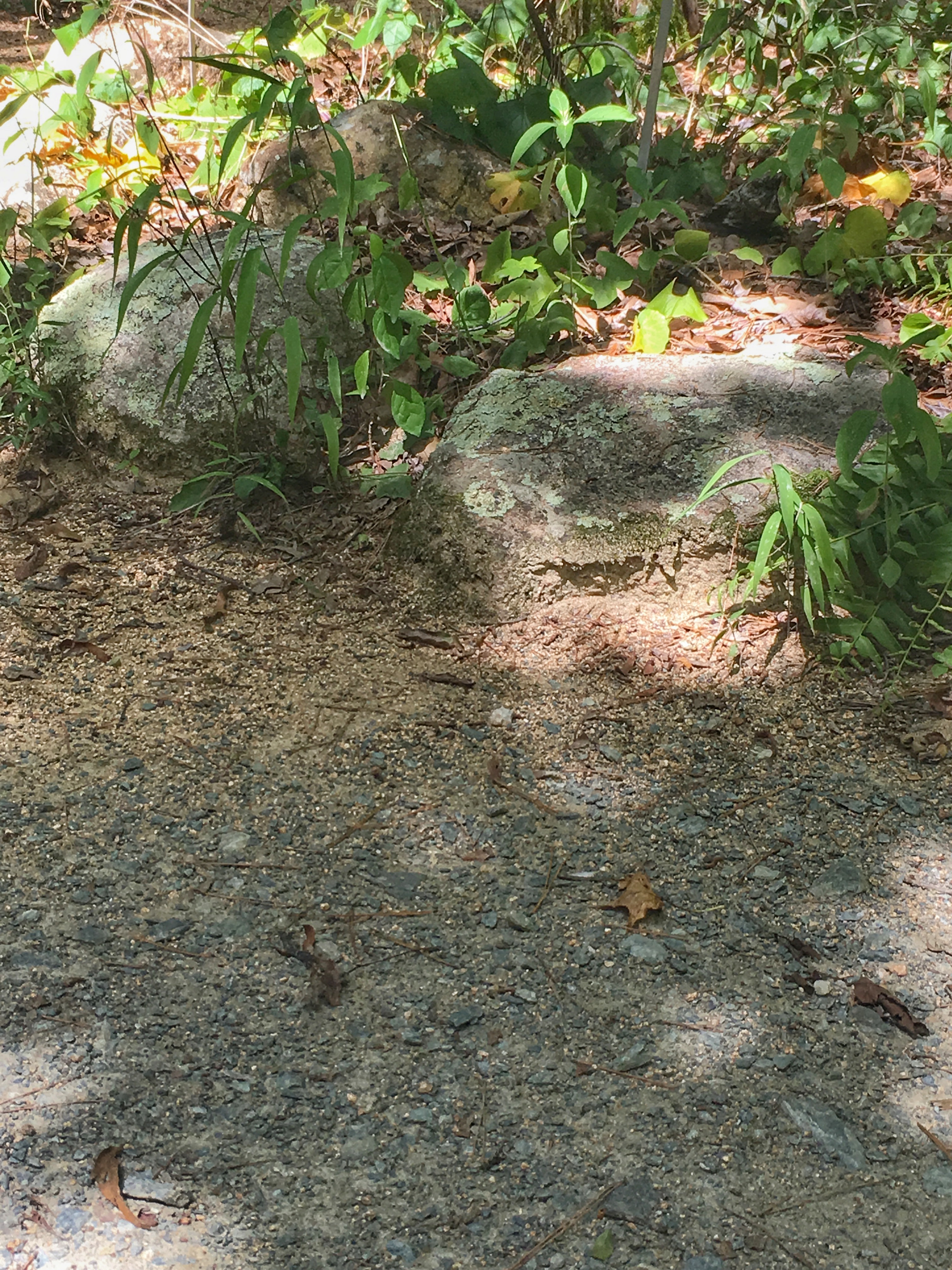 The path taken by the ants – about 6 feet across an open walkway to the rock in the background